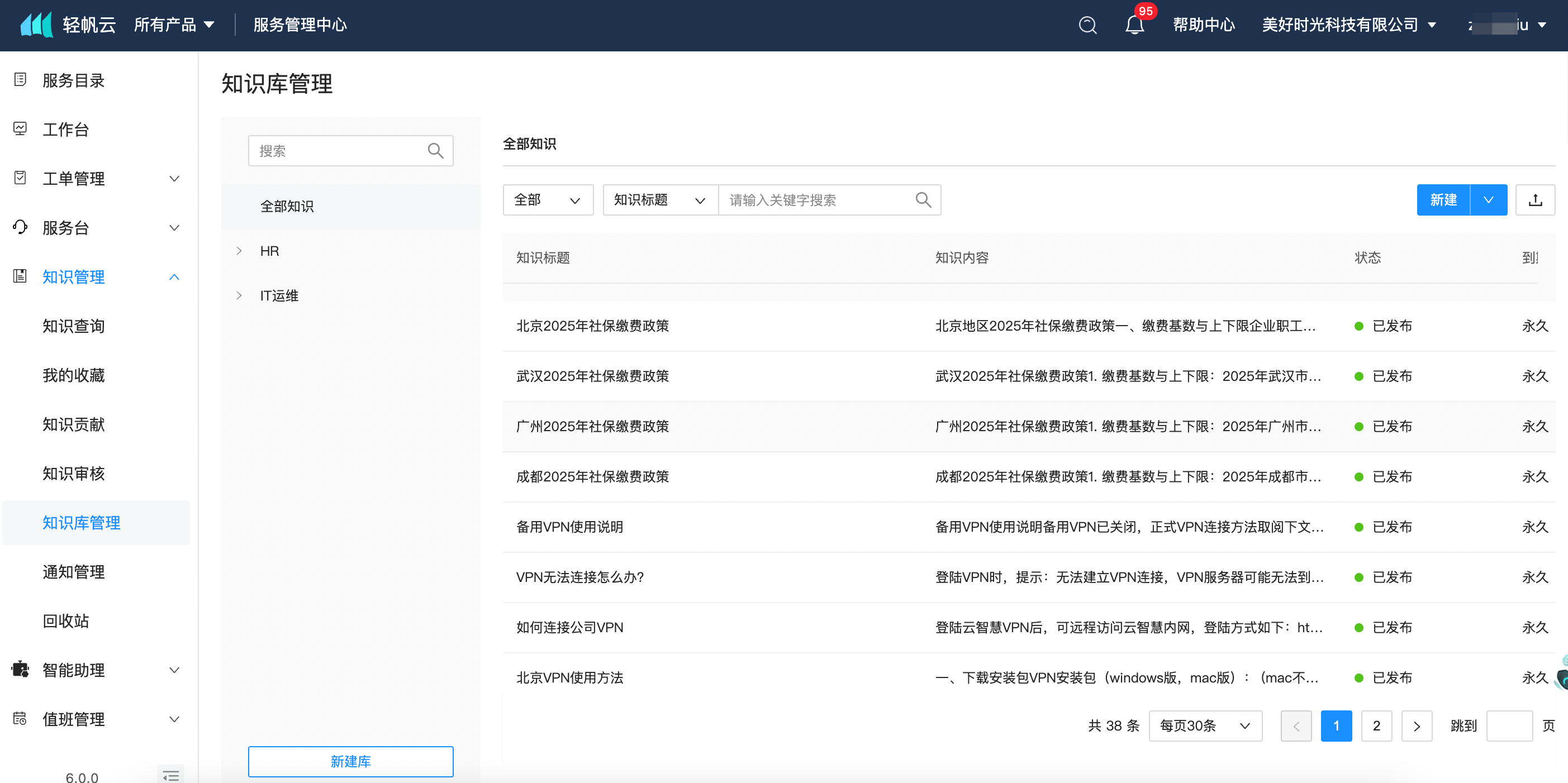 在数字化浪潮席卷全球的当下,知识已成为企业最宝贵的资产之一。轻帆云智能知识库与企业业务深度融合,在知识的消费与生产中发挥重要作用。通过智能化、自动化的知识管理,提升了问题解决效率,减少了对专业人才的依赖,优化了工作流程,降低了运营成本。企业可以将更多的资源投入到核心业务发展中,实现 IT 服务供需双方的价值共创。