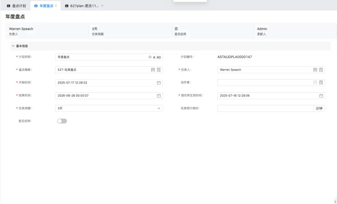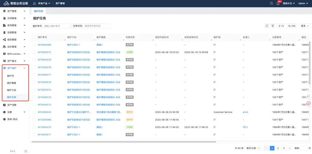 资产盘点与维护:系统支持盘点模板和盘点计划的自定义配置,满足各种复杂盘点场景,确保账实相符。同时,通过维护项、维护模板和维护计划的组合,系统能够实时生成最新的维护任务,满足复杂场景下的维护需求。